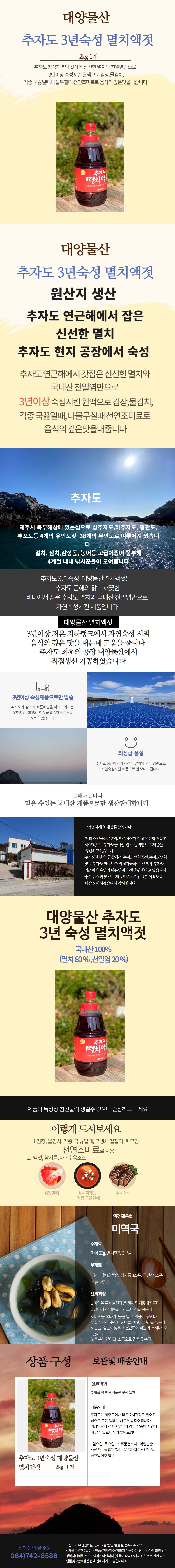 추자도 멸치액젓은 3년이상 숙성시킨 원액으로 김장,겉절이, 각종 국,나물무칠때 활용이 가능한 제품입니다